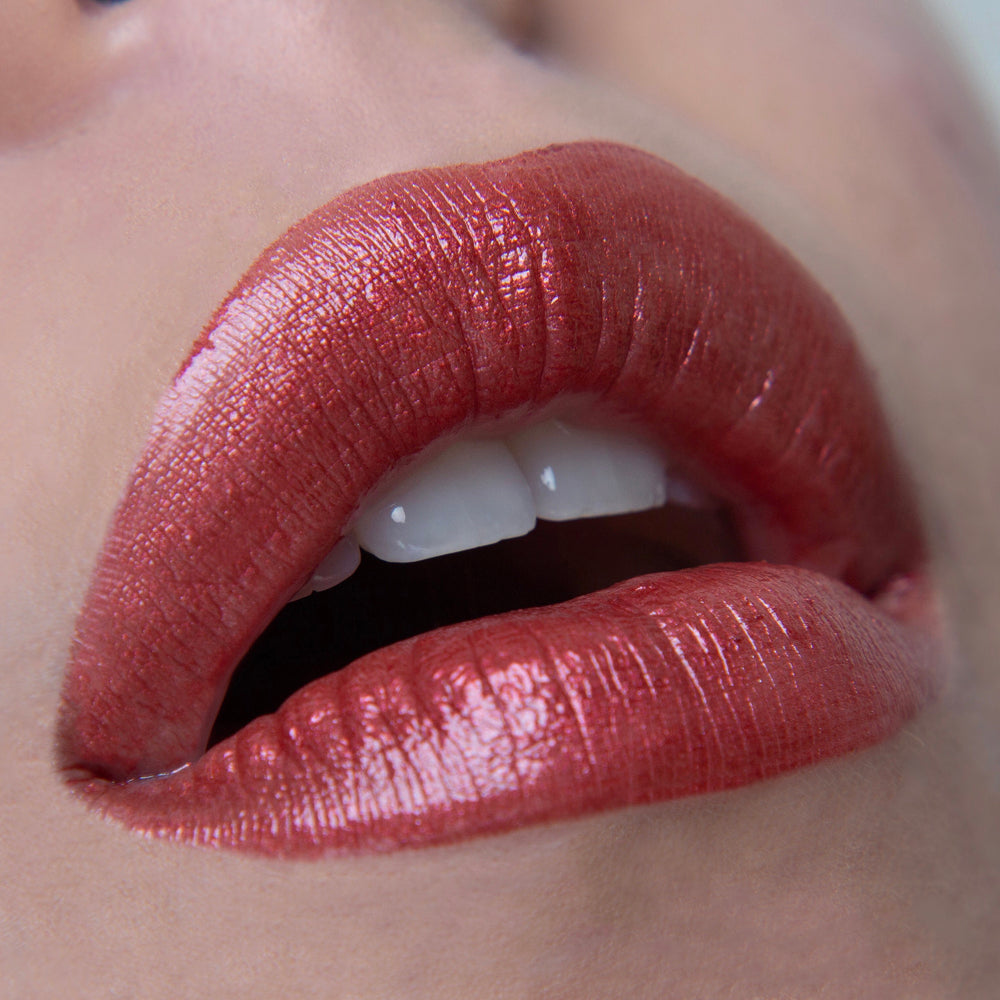 Blood-Orange Red, the epitome of Hollywood glamour! Glide this metallic, firey-hot red lip color on your pout and channel in your inner Marilyn.